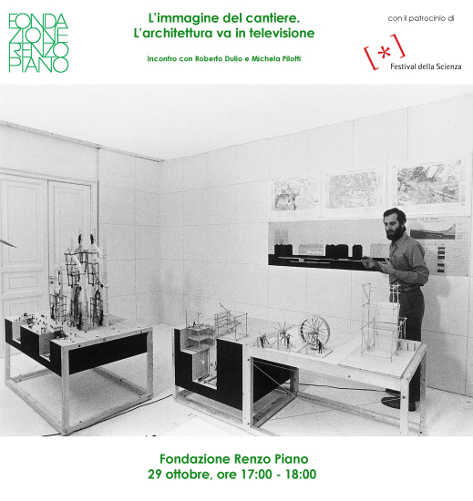 In the late 1970s, Renzo Piano experimented with this intertwining in a series of television projects broadcast on RAI networks. Opening the doors to his architectural practice, Piano recounted his approach to architecture not only through sketches and drawings, but also through film. The cameras thus captured a series of experiments on models created directly on set, in a mise-en-scène in which the dimension of the project interacts with the perception of images and with television's ability to convey the principles of construction live. An invitation to reflect on the role of the media as tools of knowledge, the influence of images, and their communicative power in the architectural field. With Roberto Dulio, professor of History of Architecture at the Politecnico di Milano, and Michela Pilotti, architect and PhD student in History of Architecture at the Politecnico di Milano.