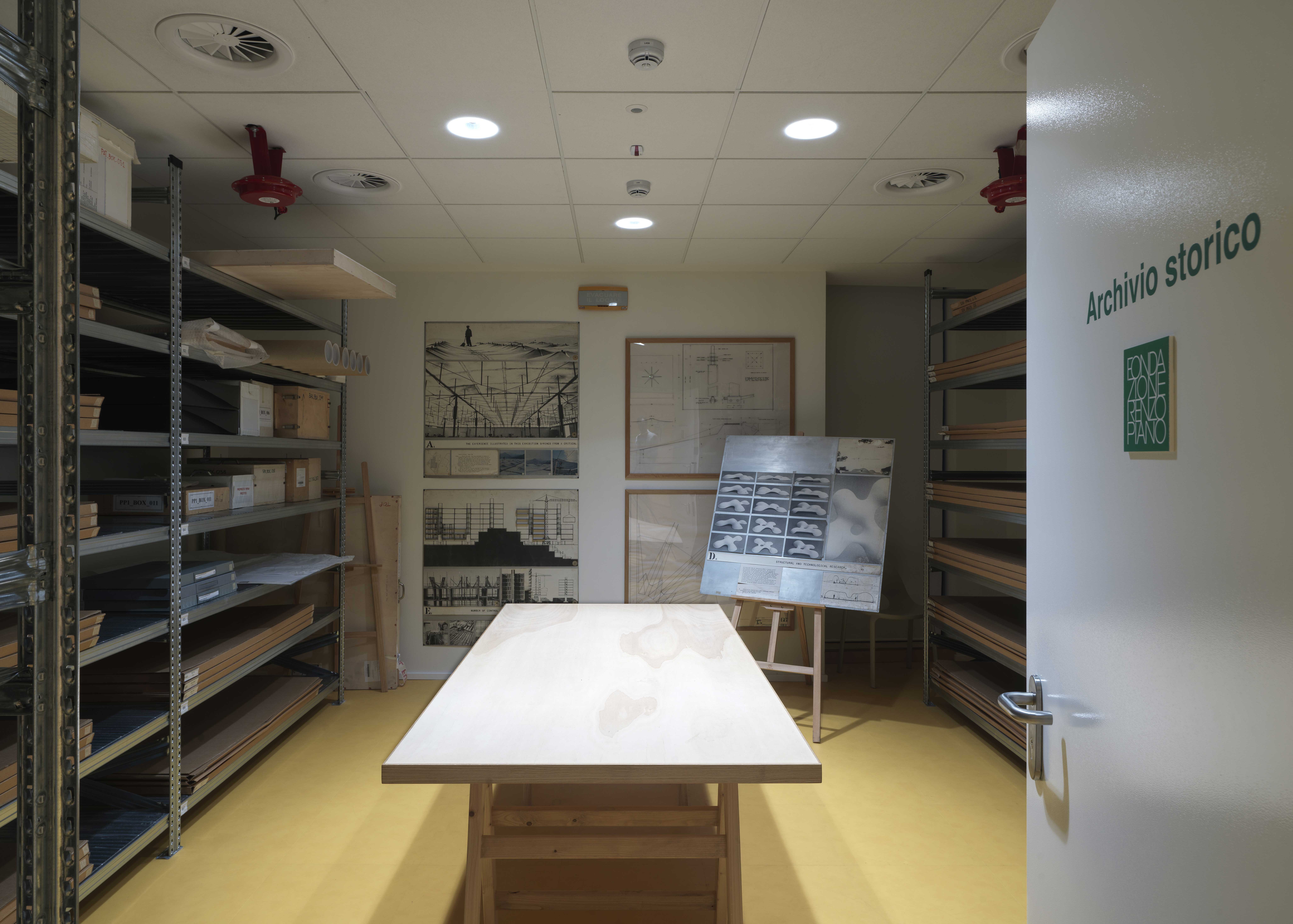 I locali ospitano una biblioteca, dedicata alle opere di Renzo Piano e RPBW ma anche ai maestri e alle contaminazioni della sua attività, un archivio, una sala modelli, una Classroom per l’attività didattica e le riunioni, e il Cubo, una stanza le cui pareti si possono sfogliare come le pagine di un libro e dove si trova raccontata la storia di più di 20 progetti.